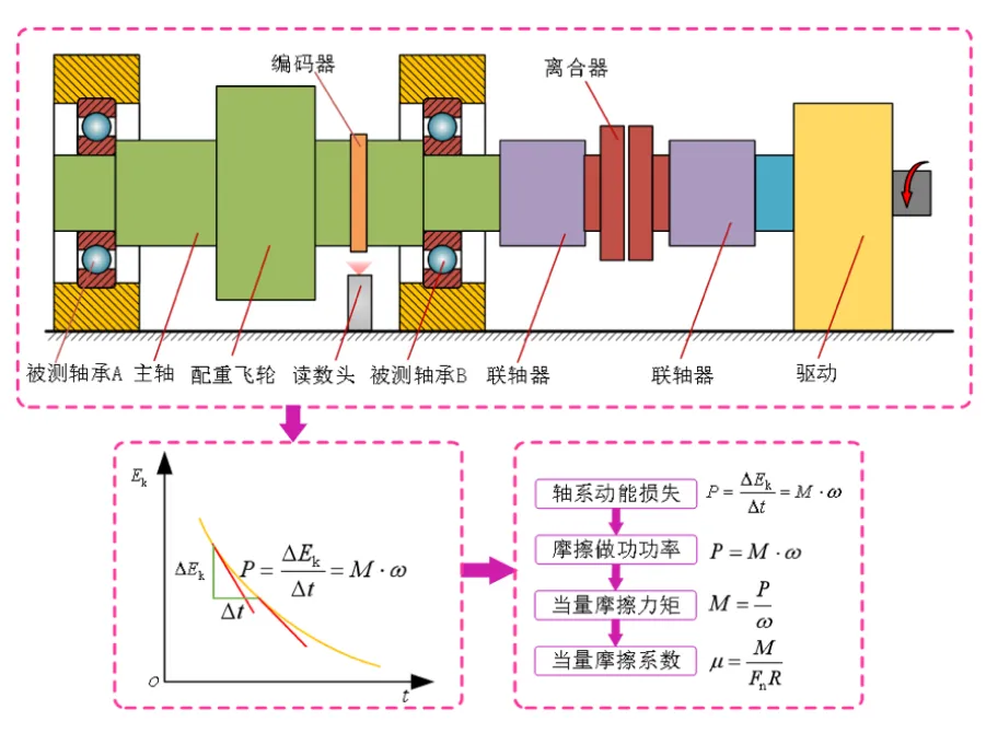 受陀螺旋轉(zhuǎn)游戲的啟發(fā),團隊提出了一種基于動能定理的滾動軸承當量摩擦系數(shù)的測量方法?!熬拖癫煌O(shè)計品質(zhì)的陀螺停止總有先后,能量的耗散也就是摩擦做功可以隨時間反映出來?!比纬勺娼忉屨f。