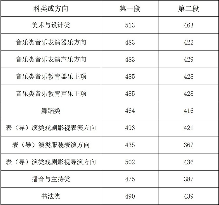 2.藝術(shù)類文化成績(jī)控制分?jǐn)?shù)線