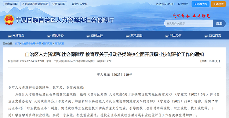 寧夏自治區(qū) 關(guān)于推動(dòng)各類院校全面開展職業(yè)技能評(píng)價(jià)工作的通知