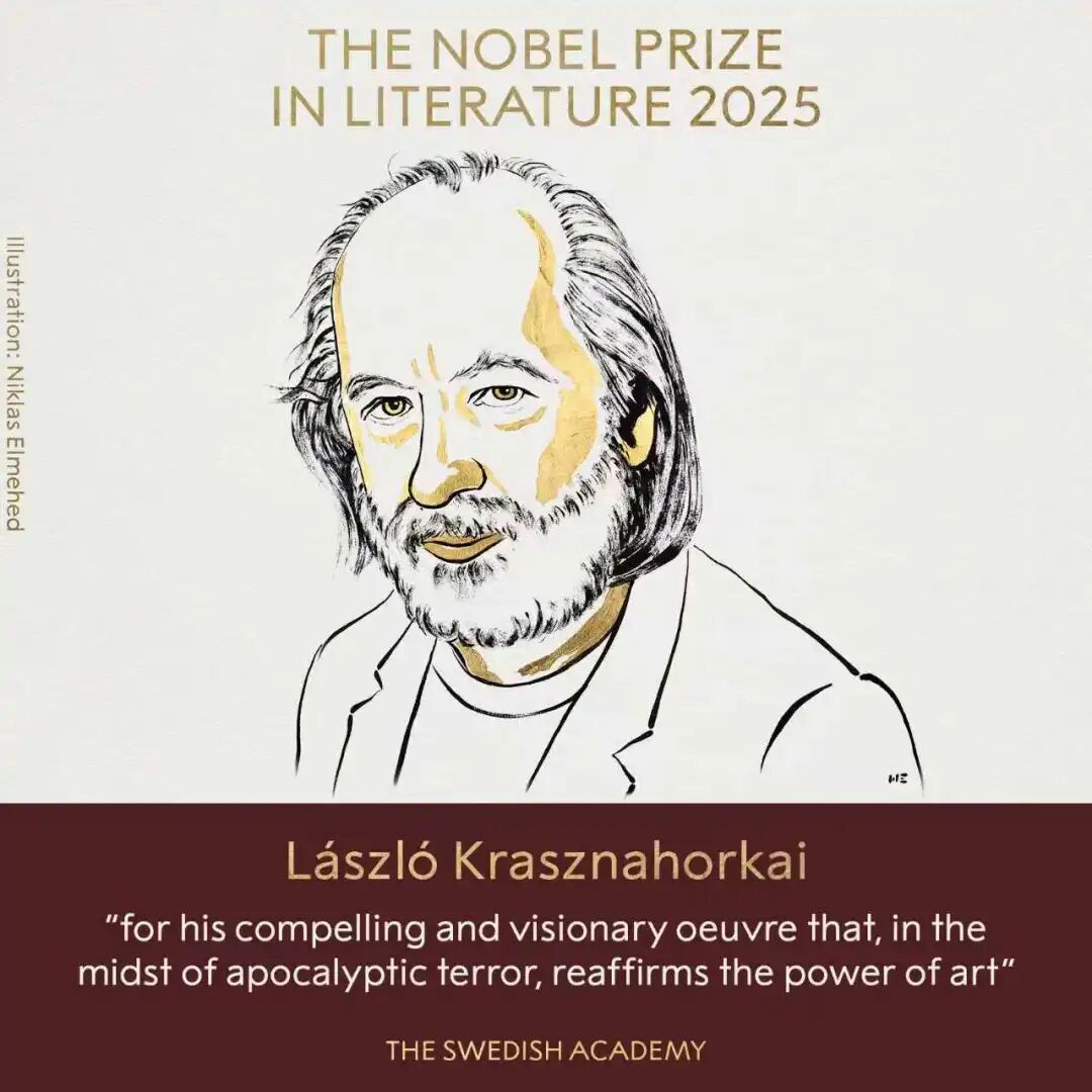 2025年諾貝爾文學獎授予匈牙利作家拉斯洛·卡撒茲納霍凱,以表彰其“在末日恐怖的背景下,以引人入勝且富有遠見的創(chuàng)作重申了藝術(shù)的力量”。獲獎獎金為1100萬瑞典克朗。