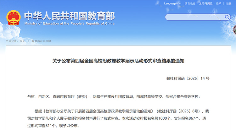 第四屆全國高校思政課教學(xué)展示活動形式審查通過名單公布