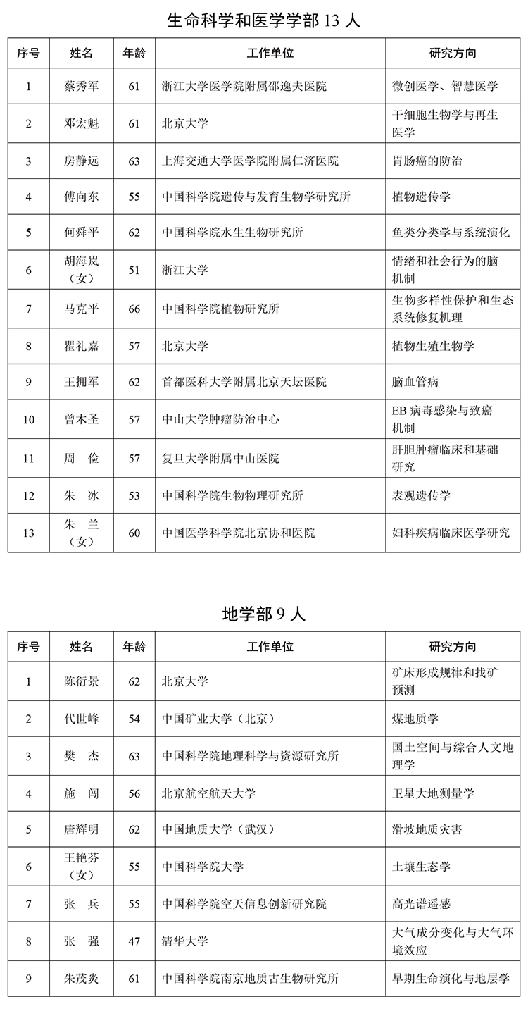 新當(dāng)選的中國科學(xué)院院士平均年齡57.2歲,最小年齡44歲,最大年齡66歲,60歲(含)以下的占67.1%,女性科學(xué)家有5人當(dāng)選。新當(dāng)選的中國工程院院士中,有6位扎根西部邊遠(yuǎn)地區(qū)的專家,有8位女性科學(xué)家。