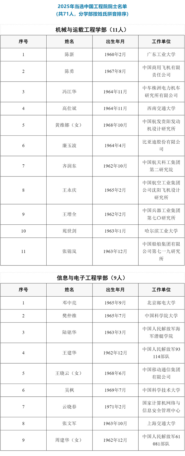 中國科學(xué)院、中國工程院11月21日公布2025年院士增選結(jié)果,分別選舉產(chǎn)生中國科學(xué)院院士73人,中國工程院院士71人。