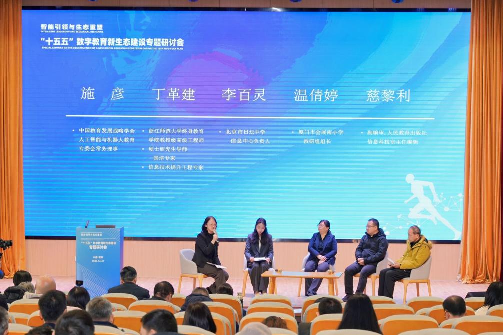 在國家“十四五”規(guī)劃圓滿收官、“十五五”規(guī)劃謀篇布局的關(guān)鍵時(shí)期,為深入貫徹落實(shí)習(xí)近平總書記關(guān)于“推進(jìn)人工智能全學(xué)段教育和全社會(huì)通識(shí)教育,源源不斷地培養(yǎng)高素質(zhì)人才”的重要指示精神,積極響應(yīng)國家教育數(shù)字化戰(zhàn)略行動(dòng)部署,“‘十五五’數(shù)字教育新生態(tài)建設(shè)專題研討會(huì)”12月27日在南京市雨花臺(tái)區(qū)南站中小學(xué)召開。會(huì)議由中國教育發(fā)展戰(zhàn)略學(xué)會(huì)教育政策與規(guī)劃專業(yè)委員會(huì)與江蘇省教育信息化與數(shù)據(jù)管理中心聯(lián)合主辦,以“智能引領(lǐng)與生態(tài)重塑”為主題,匯聚來自京、滬、渝,以及冀、晉、蒙、浙、皖、閩、贛、魯、湘、粵、桂、瓊、川、甘等17個(gè)省(區(qū)、市)教育行政部門負(fù)責(zé)人、高校專家學(xué)者及一線校長教師300多人參會(huì)。與會(huì)代表聚焦人工智能時(shí)代教育發(fā)展的根本性、前瞻性問題,重點(diǎn)圍繞“未來人才核心素養(yǎng)如何界定”“教師角色與能力如何重塑”“技術(shù)應(yīng)用如何兼顧公平與倫理”等議題展開深入研討,共商發(fā)展路徑,凝聚行動(dòng)共識(shí)。
