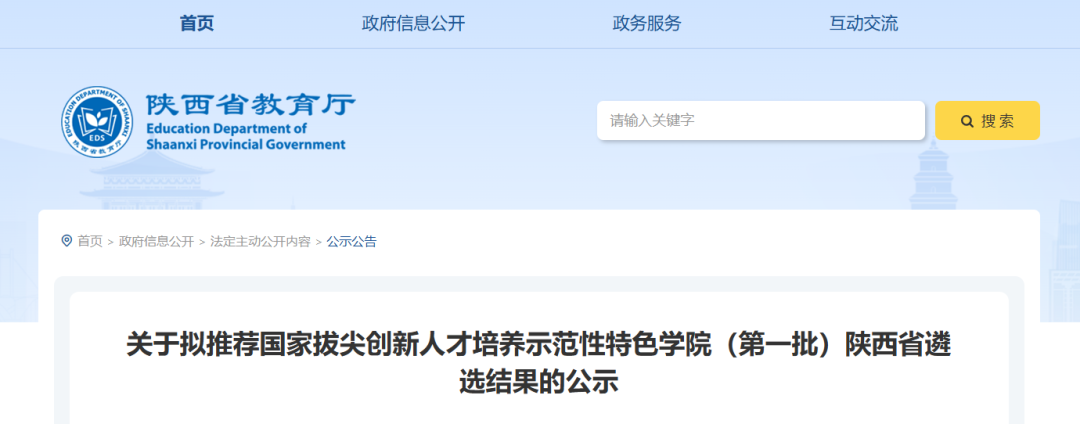 12月26日,陜西省教育廳發(fā)布《關(guān)于擬推薦國家拔尖創(chuàng)新人才培養(yǎng)示范性特色學(xué)院(第一批)陜西省遴選結(jié)果的公示》。
