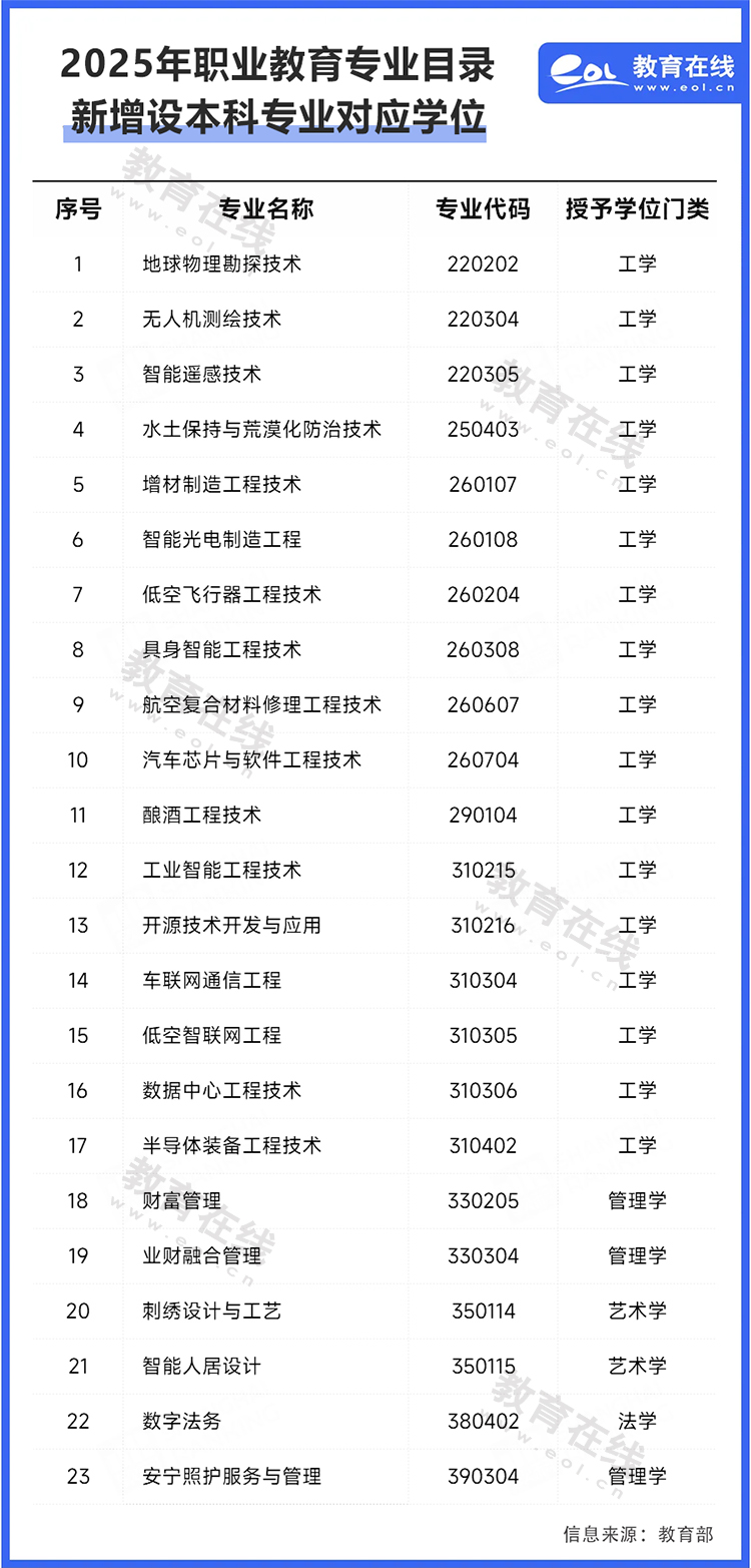 新增23個!教育部更新高職本科專業(yè)學(xué)士學(xué)位授予學(xué)科門類對應(yīng)表