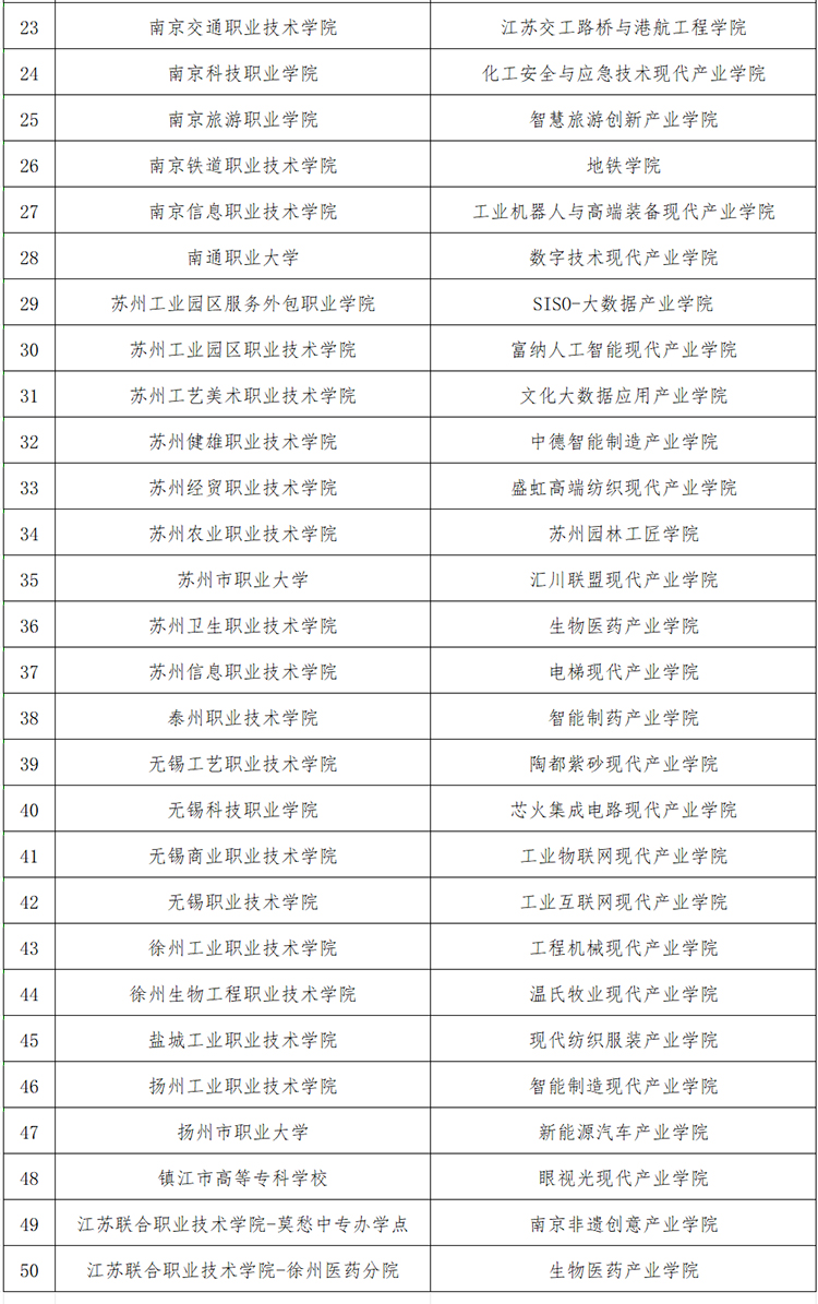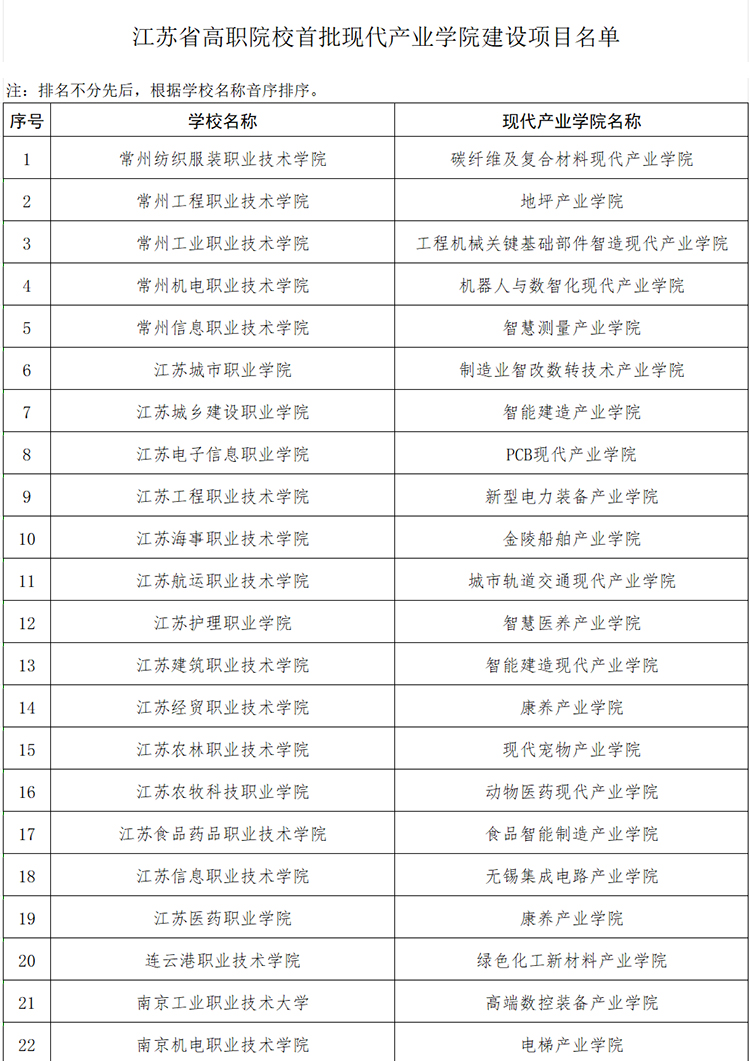 江蘇省高職院校首批現(xiàn)代產(chǎn)業(yè)學院建設(shè)項目名單公布