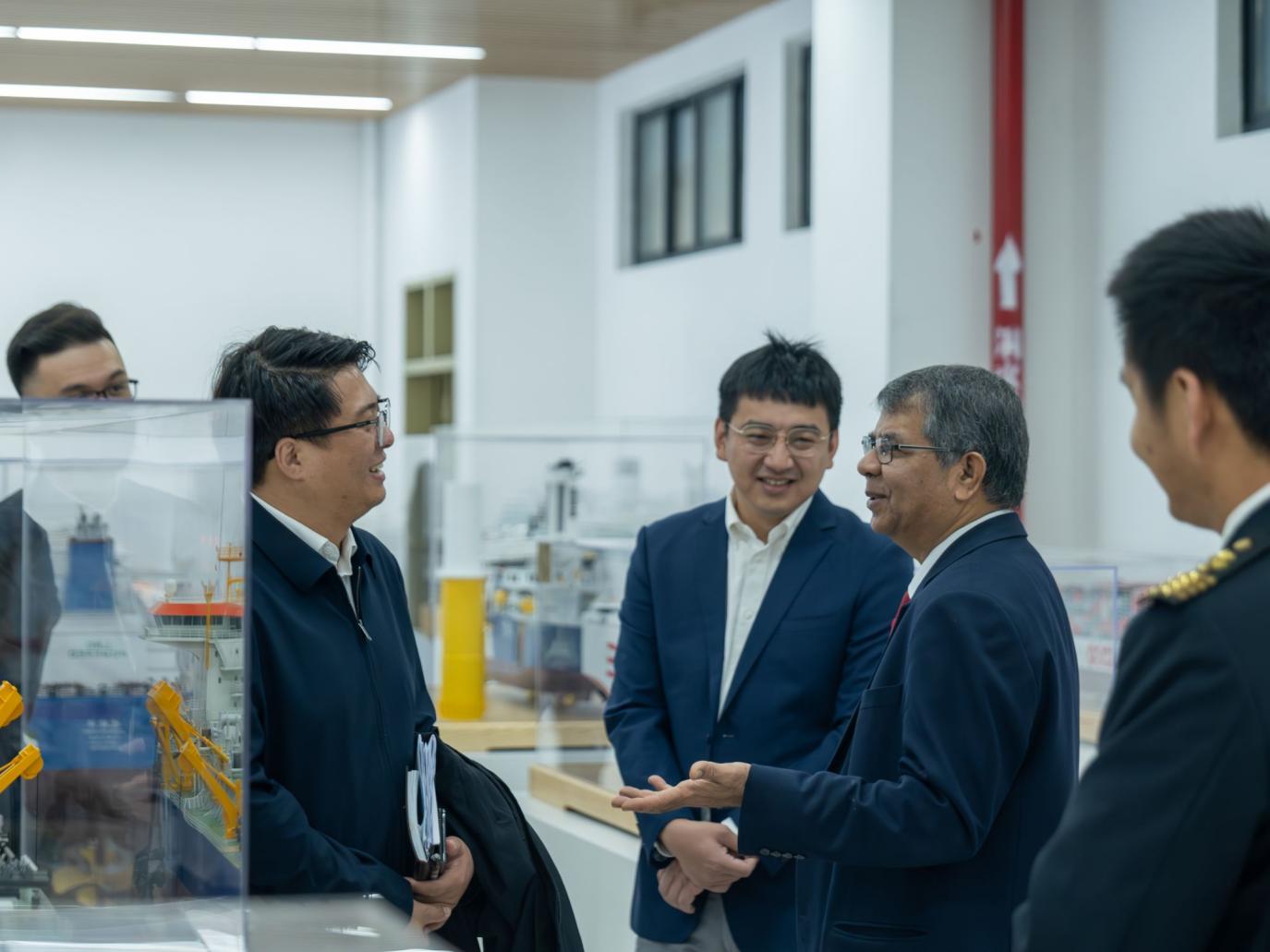 在泉州海洋職業(yè)學(xué)院校長莊偉廉、副校長陳永鑫的陪同下,馬來西亞林肯大學(xué)校長Dr. Amiya Bhaumik、聯(lián)合國協(xié)會全球大使、林肯大學(xué)創(chuàng)新與可持續(xù)發(fā)展學(xué)院院長Dr. Zoensek Lea和國際經(jīng)濟技術(shù)與產(chǎn)業(yè)創(chuàng)新協(xié)作平臺常務(wù)董事陳凌峰等一行代表團實地參觀了泉州海洋職業(yè)學(xué)院華為人工智能實訓(xùn)中心、世界特種船舶展示廳、360°船舶操縱實訓(xùn)室等特色教學(xué)場景,并對該校先進的教學(xué)設(shè)施與產(chǎn)教融合成果給予高度評價。