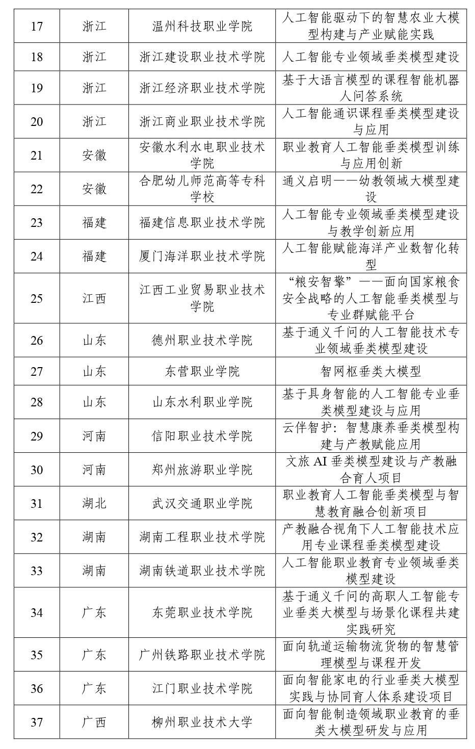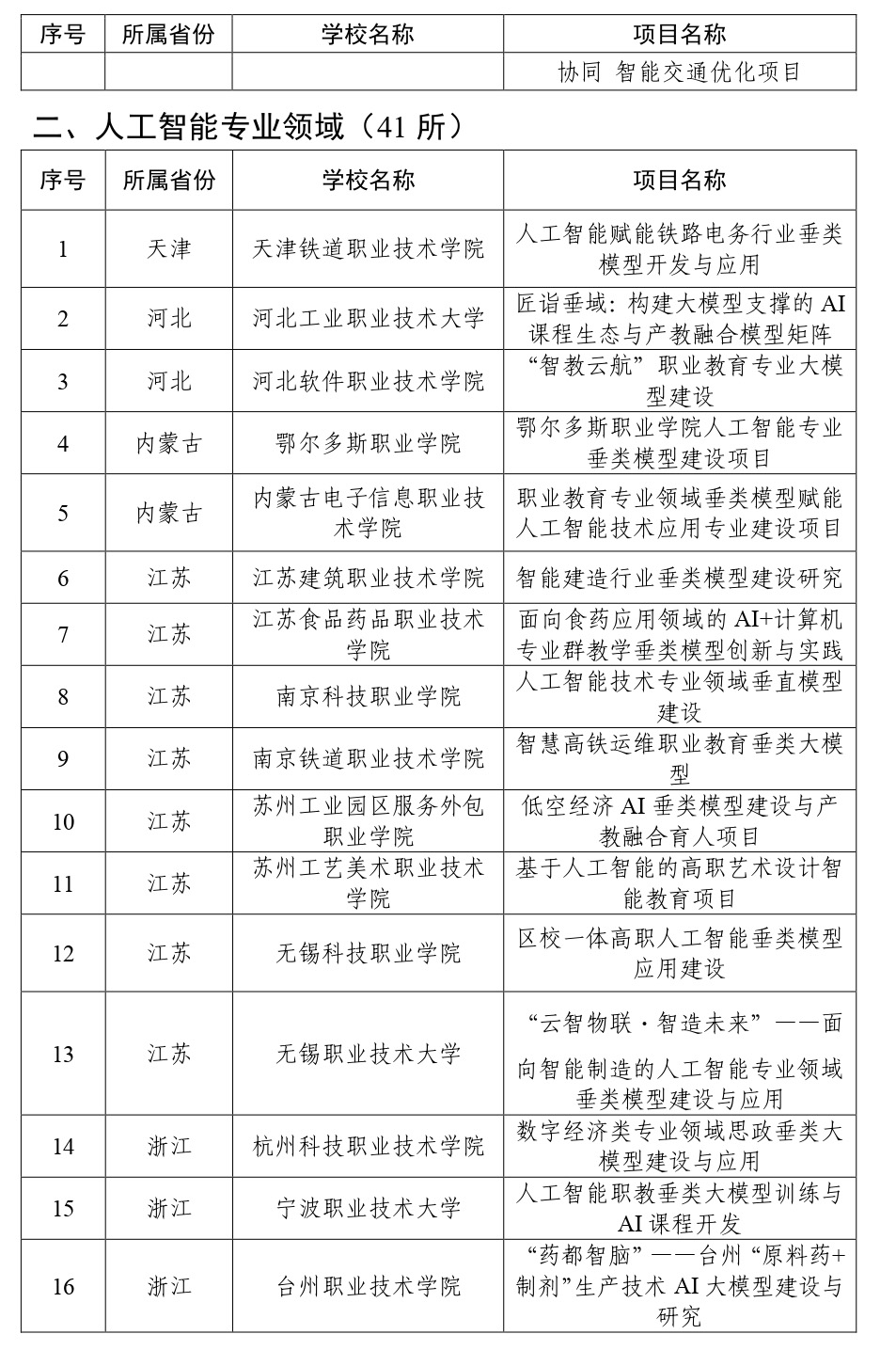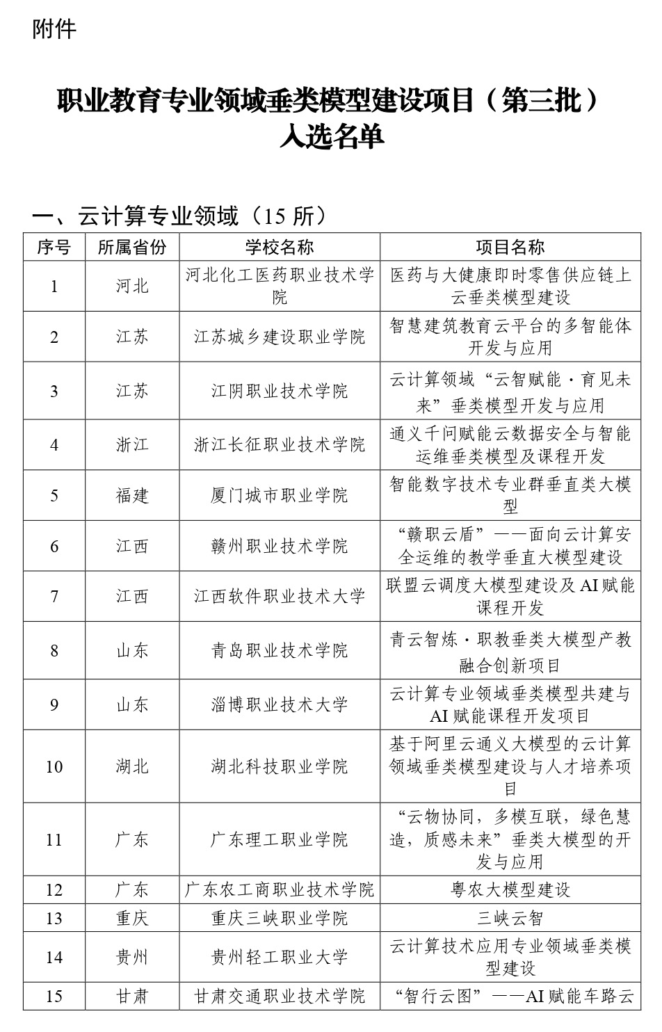 第三批職業(yè)教育專業(yè)領(lǐng)域垂類模型建設(shè)項目入選名單公布