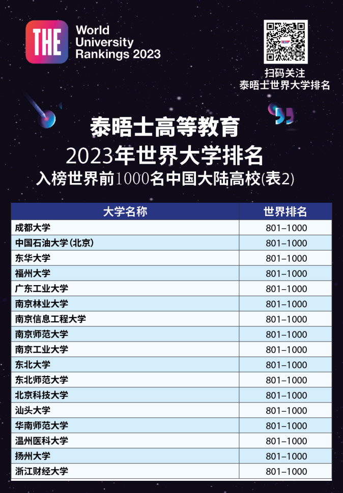 2023年共有13所中國大陸的高校首次上榜,其中長沙理工大學(xué)(第501-600名)為今年中國大陸排名最高的新上榜高校。