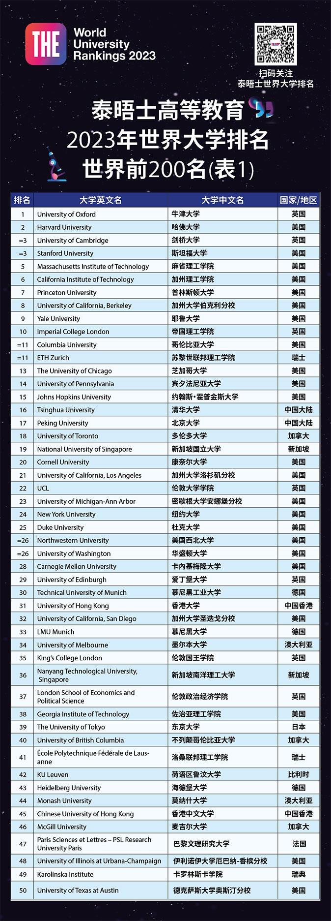 10月12日,泰晤士高等教育(THE)發(fā)布了2023年世界大學(xué)排名的結(jié)果,中國大陸高校繼續(xù)穩(wěn)步攀升,動搖美國的主導(dǎo)地位。在本次排名中,清華大學(xué)亞洲排名第一,也是中國大陸高校表現(xiàn)最好的高校(第16位),北京大學(xué)緊隨其后,位列世界第17位。