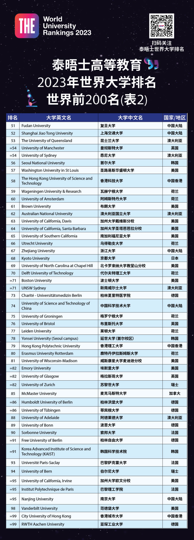 復(fù)旦大學(xué)(第51位)以及上海交通大學(xué)(第52位)排名均有所上升,進(jìn)一步逼近世界50強。