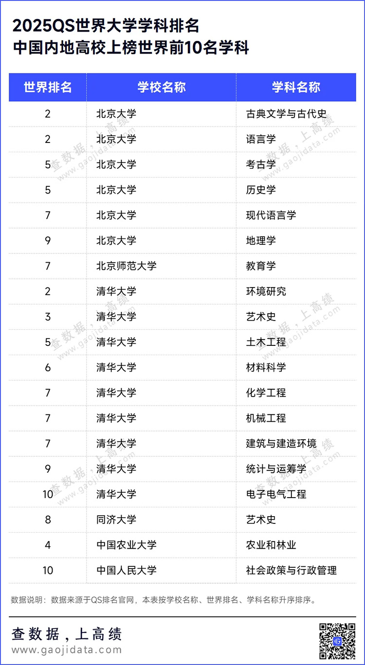 3月12日,2025QS世界大學(xué)學(xué)科排名發(fā)布。