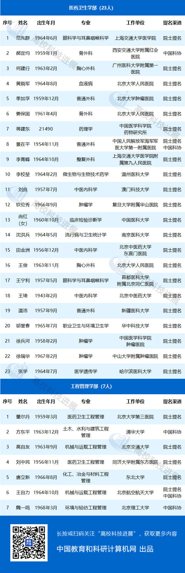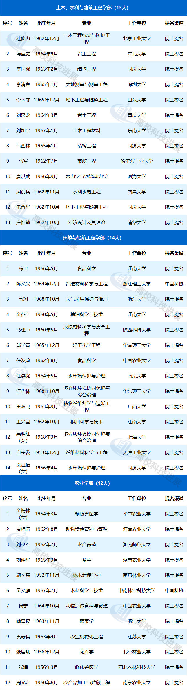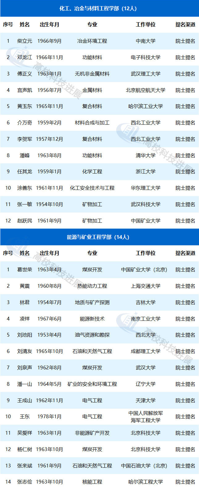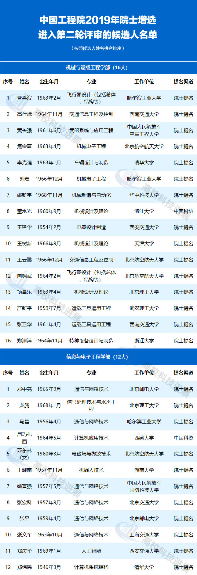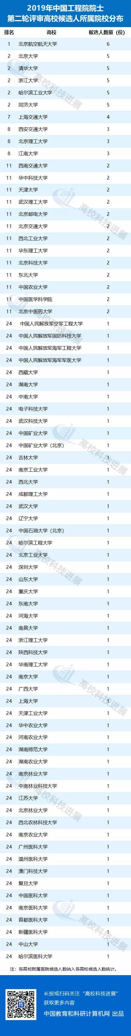 附:中國工程院2019年院士增選進入第二輪評審的高校候選人名單