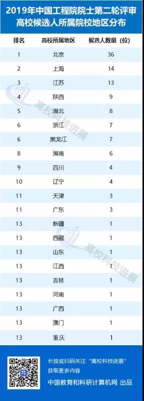 北京市高校上榜候選人數(shù)排名第一