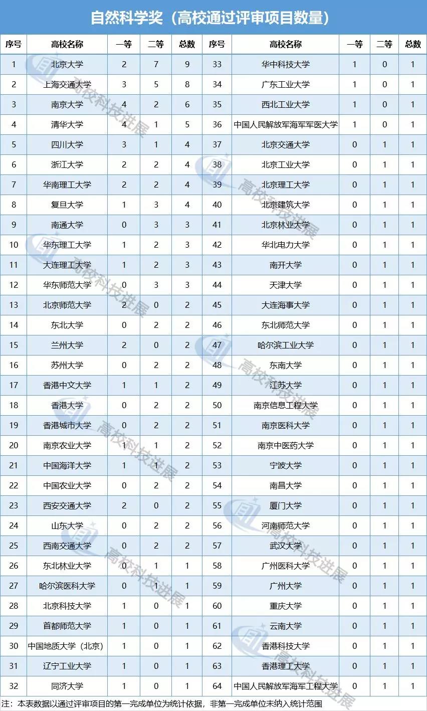 從自然科學(xué)獎(jiǎng)的會(huì)議評(píng)審結(jié)果來看,共有64所高校推薦項(xiàng)目通過評(píng)審。