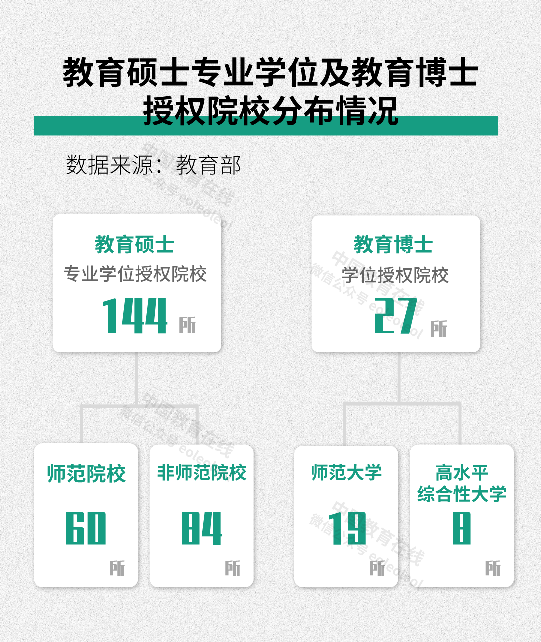 我國具有教育碩士專業(yè)學(xué)位授權(quán)院校144所,具有教育博士學(xué)位授權(quán)院校27所。