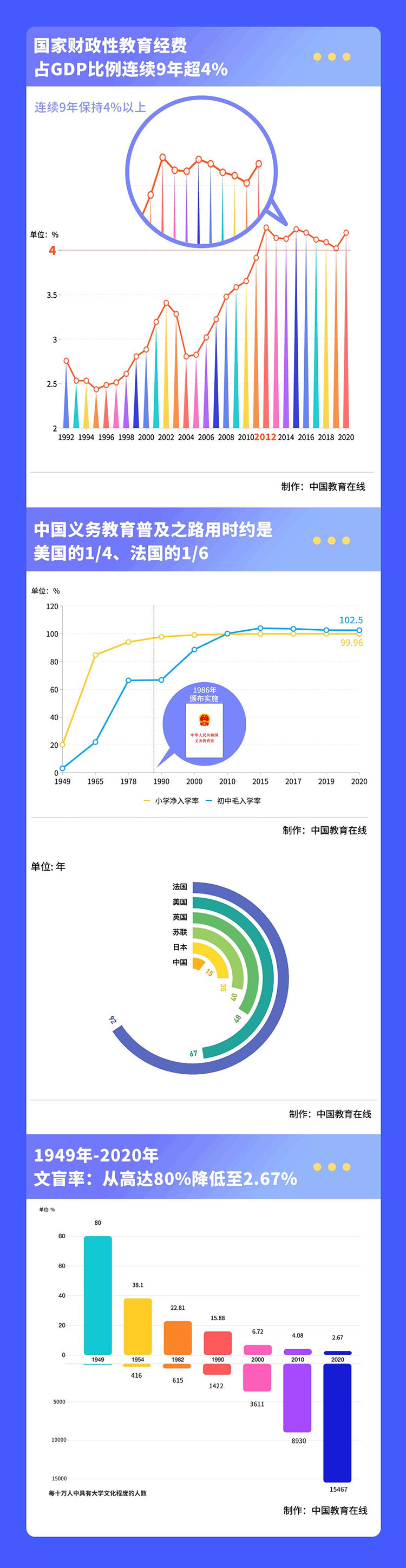 義務(wù)教育是中國的百年夢(mèng)想。新中國成立之初,學(xué)齡兒童入學(xué)率只有20%。