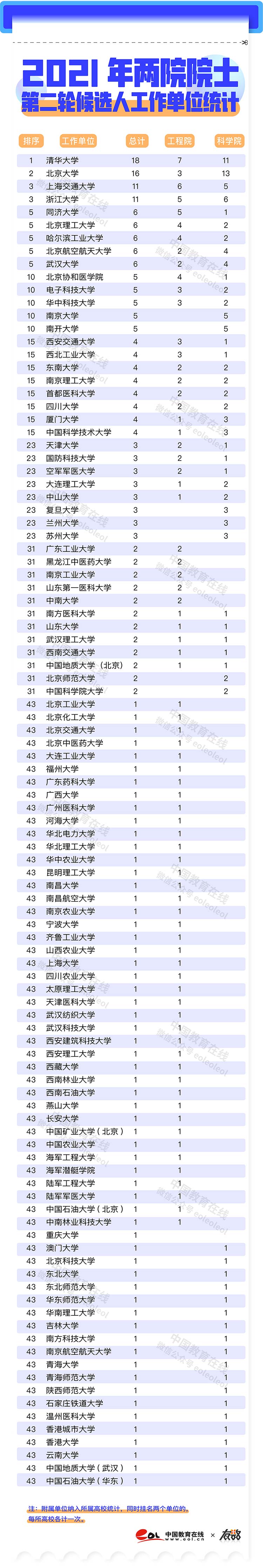 而在中國工程院院士增選二輪候選人名單中,清華大學(xué)入選人數(shù)為7人居榜首,北京大學(xué)3人入選。