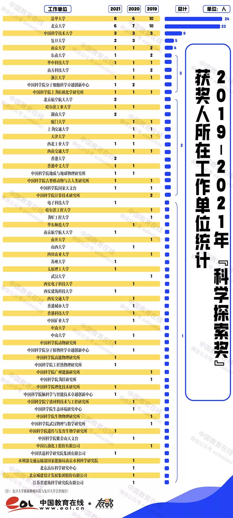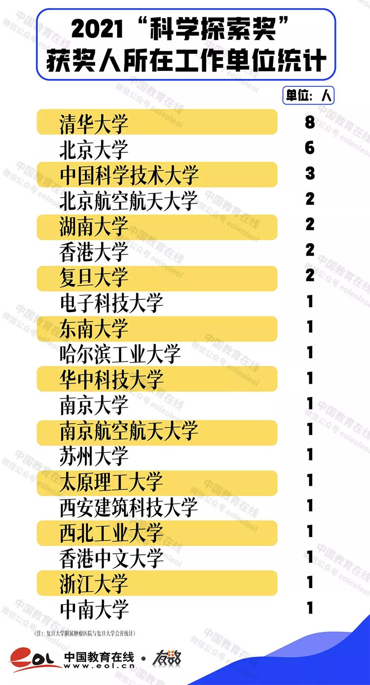 從三年的獲獎名單來看,高校共有116人獲獎,清華大學、北京大學的獲獎人數(shù)最多,分別有24位、23位科學家獲獎,其次,中國科學技術(shù)大學有9位科學家獲此殊榮。