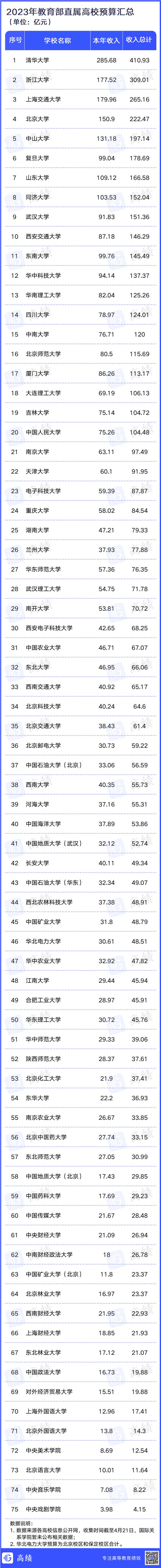 4月21日,除國際關(guān)系學(xué)院外,已有75所教育部直屬高校陸續(xù)在其信息公開網(wǎng)公布了2023年部門預(yù)算。