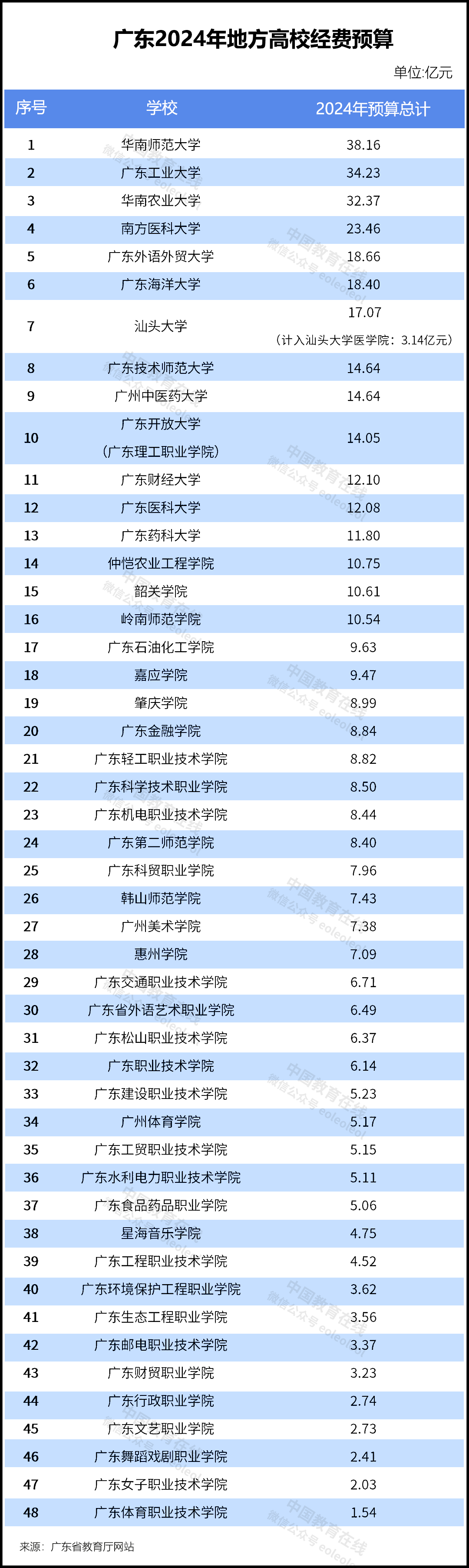 近日,廣東省教育廳網(wǎng)站公開2024年所屬單位預(yù)算信息。在48所省屬高校中,3所高校2024年預(yù)算超過(guò)30億元。