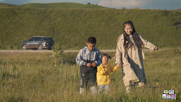 夕陽下,賀瑤拉著兄妹倆在美麗的那拉提草原上奔跑,情不自禁地想起那句:“讓我們的子孫后代享受前人披荊斬棘的幸福吧?!?/p>