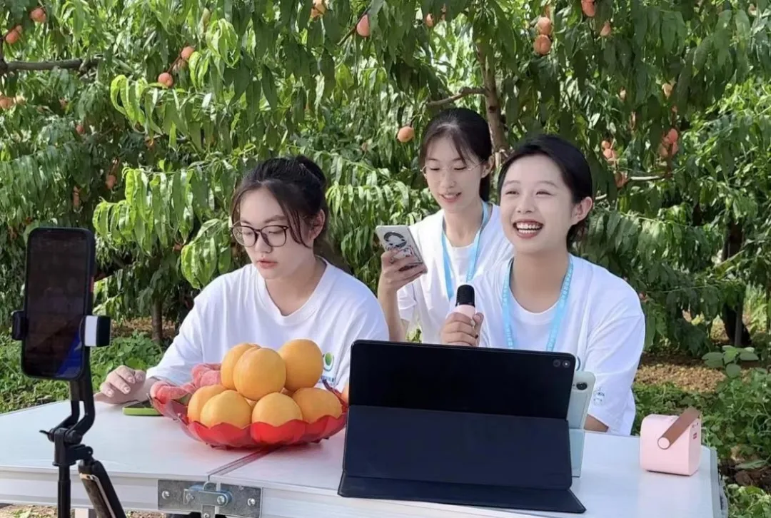 北京財貿(mào)職業(yè)學(xué)院學(xué)生在劉家店鎮(zhèn)松棚村開展大桃直播帶貨活動