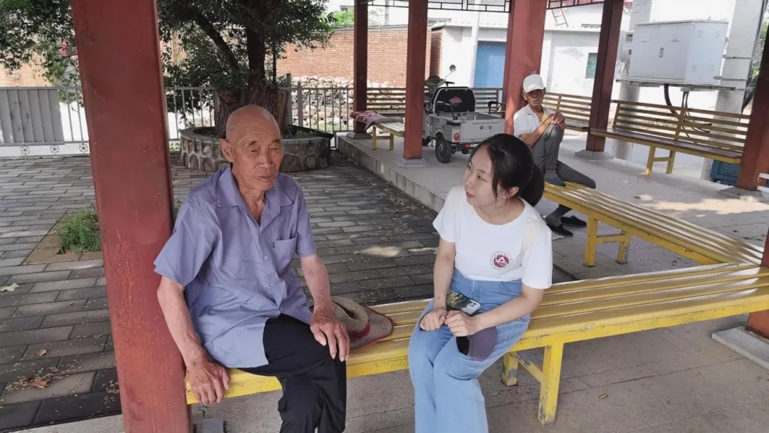 “高爺爺,您還記得當(dāng)年長(zhǎng)輩參軍時(shí)的場(chǎng)景嗎?”在北土門村里一顆合歡花樹(shù)旁,實(shí)踐團(tuán)隊(duì)員坐在抗戰(zhàn)烈士后代高有才老人身旁,認(rèn)真記錄著那段崢嶸歲月。高爺爺勉勵(lì)我們:要始終銘記紅色歷史,讓紅色精神在血脈中代代相傳,讓革命薪火在新時(shí)代的征程上永不熄滅。