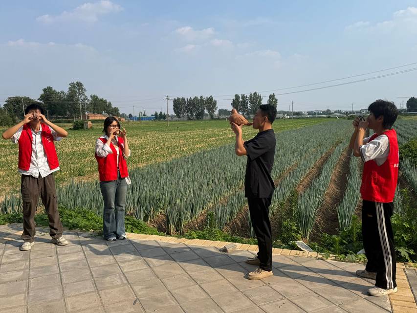 在制作完成后,成員和傳承人楊玉冰一起在農(nóng)田里吹響泥咕咕,這一聲聲泥咕咕的鳴響,是傳承人與青春力量的對話。讓古老技藝的溫度,通過呼吸與樂聲,傳遞給每一株莊稼、每一縷微風(fēng),訴說著傳統(tǒng)工藝從未遠(yuǎn)去,正以青春創(chuàng)想的姿態(tài),在生活土壤里持續(xù)生長。