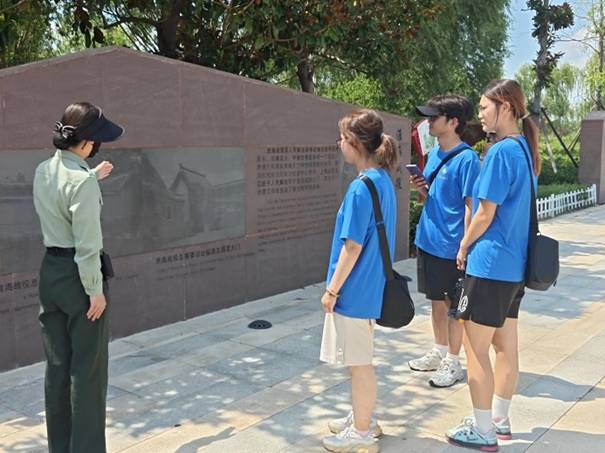 團(tuán)隊(duì)成員認(rèn)真聽取講解員介紹舊址歷史。秦勁供圖