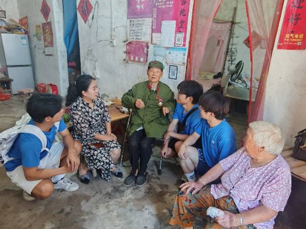 在王寨鎮(zhèn)退役軍人服務(wù)站劉敏站長(zhǎng)帶領(lǐng)下,實(shí)踐團(tuán)有幸拜訪到了94歲抗美援朝老兵郭吉宣。1951年入朝作戰(zhàn)的他,曾在沙里院車站冒死搶運(yùn)物資?!罢◤椔褡∥視r(shí),以為要光榮了……”講述被戰(zhàn)友從彈坑救出的經(jīng)歷,老人淚光閃爍。停戰(zhàn)后,郭老繼續(xù)駐防朝鮮東海岸挖進(jìn)行軍事訓(xùn)練和建造防空設(shè)施,于1956年離開朝鮮回國(guó),1958年復(fù)原回鄉(xiāng)。劉敏站長(zhǎng)說到,“讓退役軍人成為全社會(huì)尊重的人,讓軍人成為全社會(huì)尊崇的職業(yè),讓退役軍人有更多的獲得感、歸屬感、榮譽(yù)感和幸福感”。從政策落地的 “最后一公里” 到生活冷暖的 “細(xì)微之處”,王寨鎮(zhèn)退役軍人服務(wù)站用實(shí)打?qū)嵉男袆?dòng)為退役軍人撐起一片晴空。