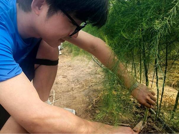 實(shí)踐團(tuán)成員在大棚體驗(yàn)采摘蘆筍。安哲供圖