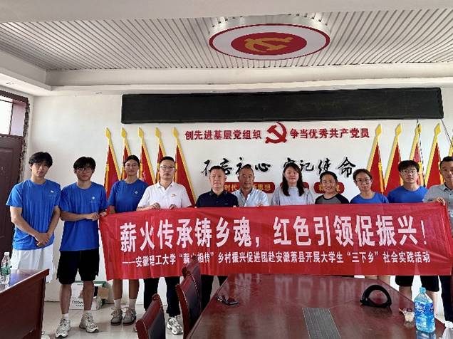 在國(guó)家“百校聯(lián)百縣興千村”的行動(dòng)號(hào)召下,近日,安徽理工大學(xué)力學(xué)與光電物理學(xué)院“薪火相傳”鄉(xiāng)村振興實(shí)踐團(tuán)師生奔赴安徽省宿州市蕭縣開展了一場(chǎng)融合紅色尋訪與產(chǎn)業(yè)調(diào)研的“三下鄉(xiāng)”暑期社會(huì)實(shí)踐。期間,實(shí)踐團(tuán)成員先后深入丁里鎮(zhèn)蔡洼村、丁里鎮(zhèn)郭莊村、白土鎮(zhèn)張村等地,實(shí)地走訪了蔡洼淮海戰(zhàn)役總前委舊址、郭莊知青園、王寨鎮(zhèn)退役軍人服務(wù)站等紅色文化基地,詳細(xì)調(diào)研了蘆筍生產(chǎn)基地、葡堤原鄉(xiāng)、廣順白羊養(yǎng)殖合作社等七彩產(chǎn)業(yè)園區(qū)。通過實(shí)地考察、深度訪談與親身體驗(yàn)相結(jié)合的方式,實(shí)踐團(tuán)感悟紅色精神賡續(xù),探索蕭縣振興路徑,以青春活力賦能鄉(xiāng)村振興。