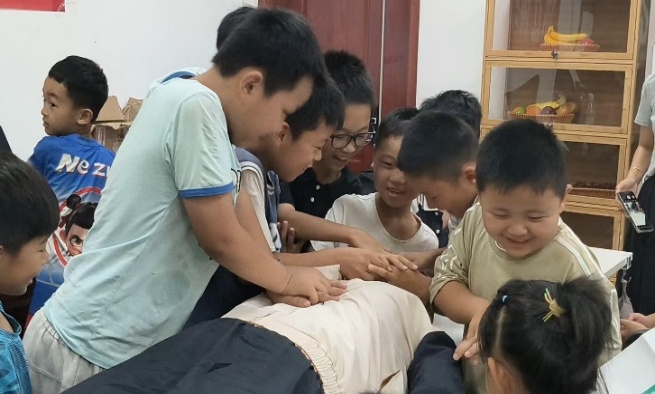 為保證實踐能順利開展,志團隊成員第一時間制定了課程表,秉持著豐富孩子假期、提高孩子綜合素養(yǎng)的理念,課程覆蓋著安全教育、科學(xué)啟蒙、體育鍛煉、趣味手工、課業(yè)輔導(dǎo)等多個方面。安全守護是成長的重要一環(huán)。實踐團將安全教育設(shè)為必修課,通過現(xiàn)場演示與模擬操作,教授海姆立克急救法、心肺復(fù)蘇及防溺水知識。孩子們在親身體驗中掌握了關(guān)鍵的自救互救技能。