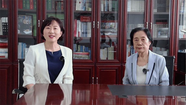 黃河科技學(xué)院創(chuàng)辦人、董事長胡大白(右)接受中國教育在線副總編孫春蕾(左)專訪