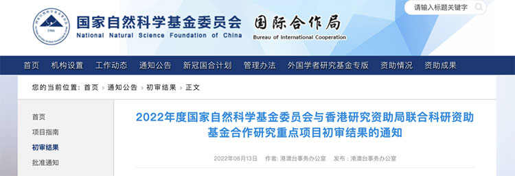 6月13日,國家自然科學(xué)基金委員會(NSFC)公布了又一合作項目初審結(jié)果。