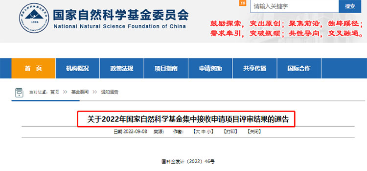 9月8日,國家自然科學(xué)基金委員會官網(wǎng)發(fā)布了《關(guān)于2022年國家自然科學(xué)基金集中接收申請項目評審結(jié)果的通告》。