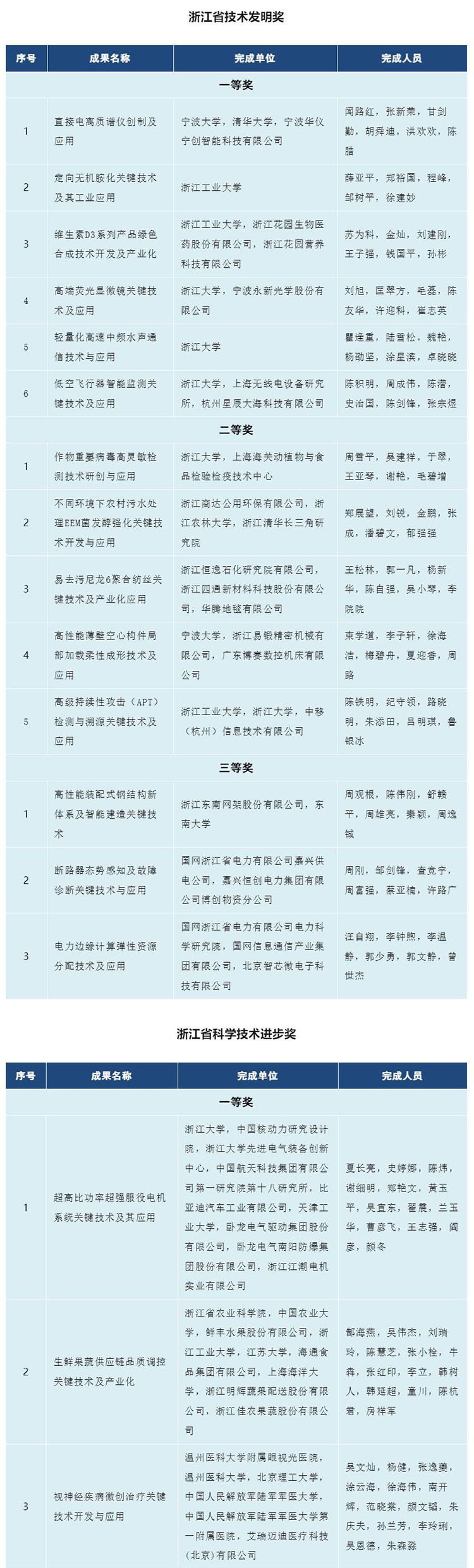 2023年度浙江省科學(xué)技術(shù)獎公布