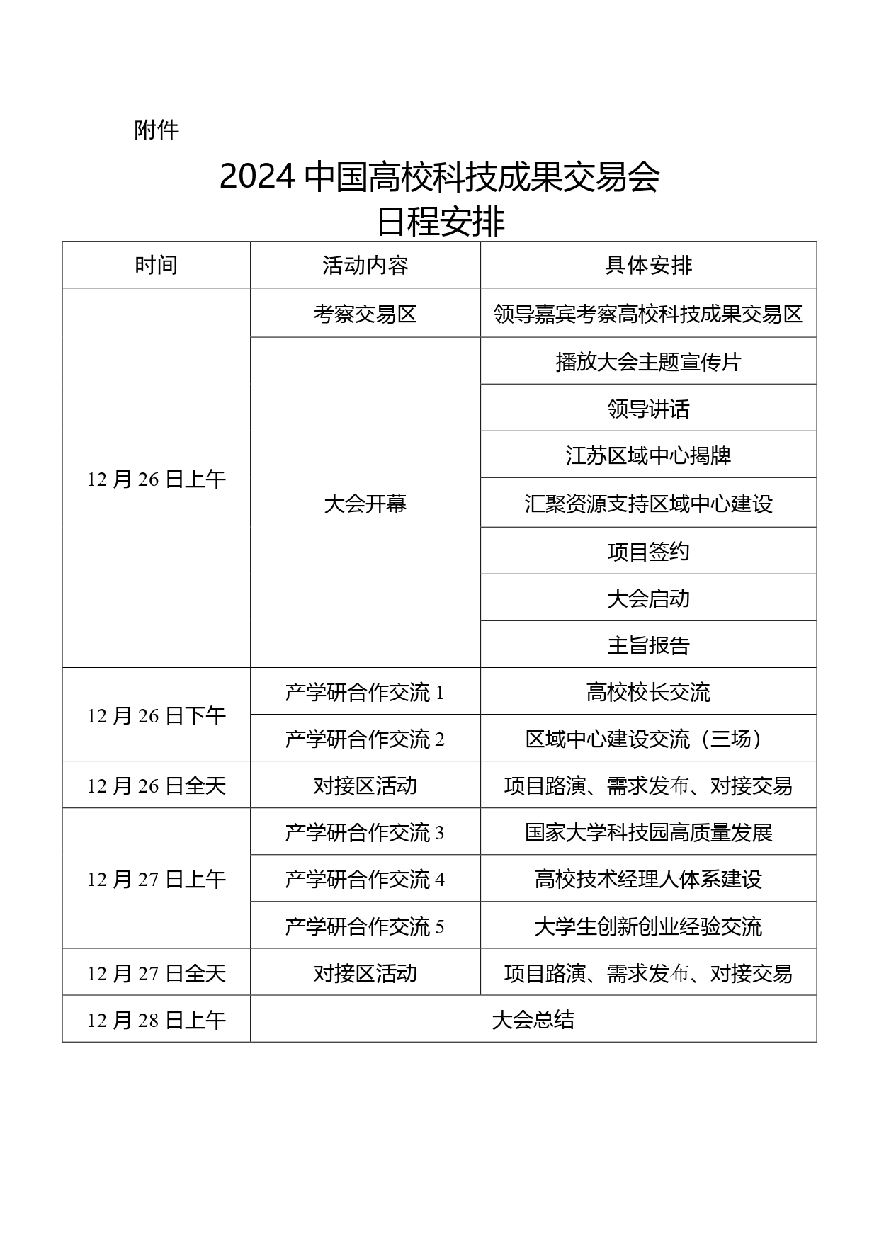 為深入學(xué)習(xí)貫徹習(xí)近平總書記關(guān)于教育的重要論述,貫徹落實黨的二十屆三中全會、全國教育大會和中央經(jīng)濟(jì)工作會議精神,讓更多科技成果盡快轉(zhuǎn)化為現(xiàn)實生產(chǎn)力,經(jīng)教育部批準(zhǔn),我中心與全國高校區(qū)域技術(shù)轉(zhuǎn)移轉(zhuǎn)化中心(江蘇)(以下簡稱江蘇區(qū)域中心),將于2024年12月26—28日在江蘇省南京市共同舉辦2024中國高校科技成果交易會(以下簡稱2024科交會)。