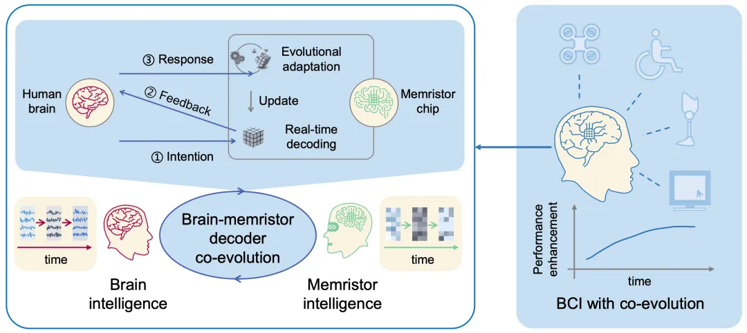“這項研究首次提出了腦機協(xié)同演進的概念,并基于憶阻器神經(jīng)形態(tài)器件完成了技術(shù)驗證,通過長時程大腦與憶阻器神經(jīng)形態(tài)器件之間的信息交互初步實現(xiàn)了生物智能與機器智能的互適應(yīng)、互學(xué)習(xí),為未來實用型腦機接口系統(tǒng)提供了重要的理論基礎(chǔ)與技術(shù)支撐,也為腦機融合智能的發(fā)展開辟了新的方向?!眹腋邔哟稳瞬庞媱澣脒x者、天津大學(xué)腦機海河實驗室許敏鵬教授表示。“我們這款系統(tǒng)未來計劃拓展到更多便攜式或可穿戴腦機接口設(shè)備中,服務(wù)于消費級、醫(yī)療級等各類智能人機交互實用場景?!?/p>