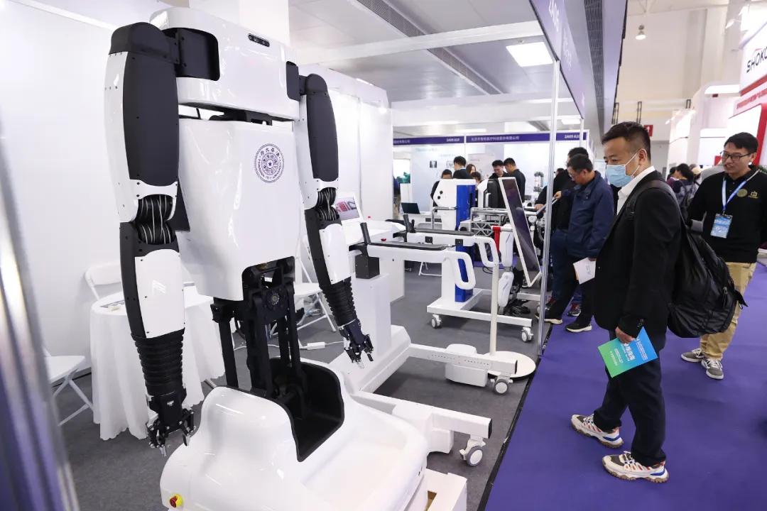 △第十屆北京國際老齡產(chǎn)業(yè)博覽會上展示的護(hù)理機(jī)器人。