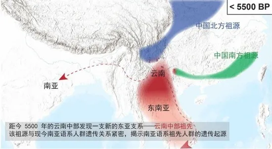 本研究的第二項重要發(fā)現(xiàn)是證實了云南可能是南亞語系族群早期分布的核心區(qū)域之一。以佤族、布朗族等主要分布于中國西南、華南以及印度東北部、東南亞(如越南、柬埔寨、老撾等地部分民族)的南亞語系族群起源及擴散問題長期眾訟不決,尤其是其起源地、擴散時間、擴散路徑等問題爭議很大。目前主流假設源于語言學模型,缺乏直接遺傳學證據(jù)。本研究通過古人基因組捕獲、測定、分析,在云南中部距今5500至1400年古人群中識別出一種新的獨特東亞祖源,研究團隊將其命名為“云南中部祖先人群”(Central Yunnan Ancestry),分析表明這一祖源與當今南亞語系人群密切相關,否定了既往認為的南亞語系族群印度或東南亞起源說,提出了重新審視南亞語系族群形成、傳播模式等一系列問題。