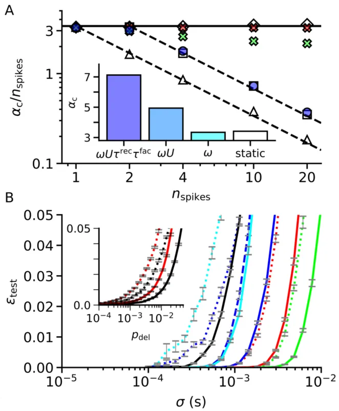 針對這一難題,研究團(tuán)隊(duì)通過構(gòu)建突觸計(jì)算與學(xué)習(xí)理論模型,發(fā)現(xiàn)當(dāng)“長時(shí)可塑性”作用于“短時(shí)可塑性”時(shí),大腦能夠?qū)r(shí)間序列上的信息轉(zhuǎn)化為空間上的表達(dá)模式。這一機(jī)制顯著增強(qiáng)了神經(jīng)網(wǎng)絡(luò)的記憶容量、抗干擾能力以及對復(fù)雜時(shí)空信息的識別能力。該模型還在小鼠與人類大腦皮層突觸電生理觀測中得到了驗(yàn)證,顯示出高度的生物合理性。