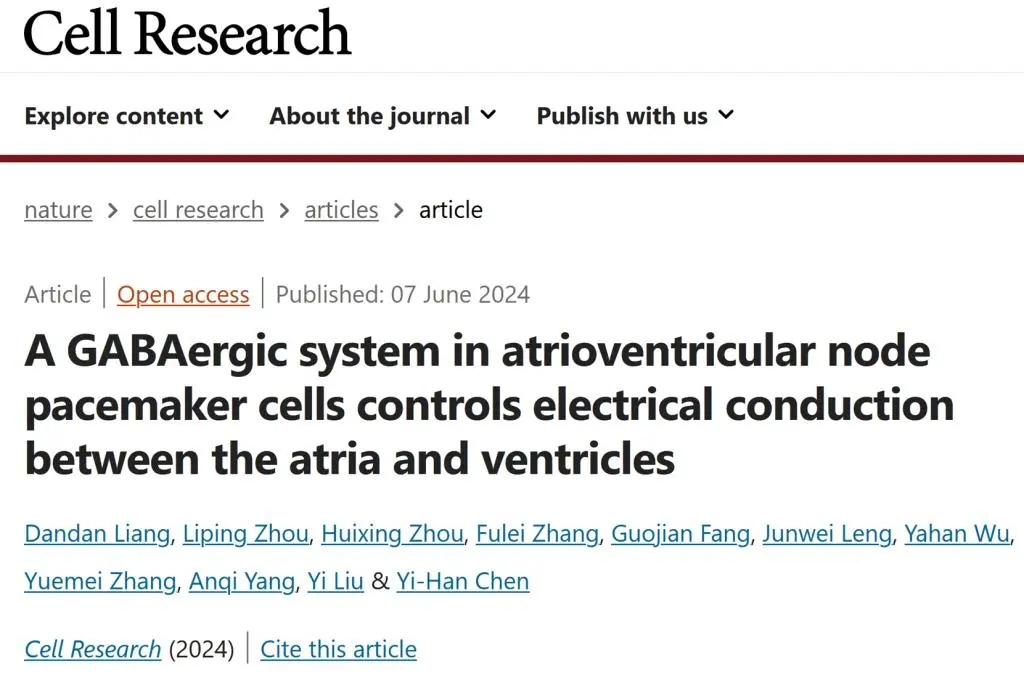 醫(yī)學(xué)院、附屬東方醫(yī)院心臟病全國重點實驗室陳義漢院士團隊在心臟中發(fā)現(xiàn)了γ-氨基丁酸(GABA)能系統(tǒng),該系統(tǒng)控制電信號從心房向心室的傳導(dǎo),促成心房和心室的有序收縮,維持正常的心臟搏動和有效的血液循環(huán)。針對該系統(tǒng)的干預(yù)可以有效地預(yù)防和治療房室傳導(dǎo)阻滯。該研究成果在線發(fā)表于《細(xì)胞研究》(Cell Research)。