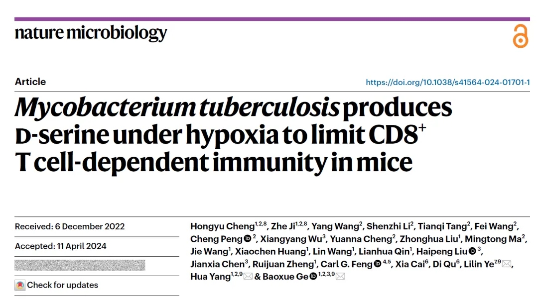 由結(jié)核分枝桿菌感染引起的結(jié)核病(Tuberculosis, TB)仍然是嚴(yán)重威脅人類健康的重大傳染性疾病之一。醫(yī)學(xué)院戈寶學(xué)、楊華團隊合作研究發(fā)現(xiàn)了結(jié)核桿菌逃避CD8+ T細(xì)胞免疫清除新機制,針對結(jié)核分枝桿菌關(guān)鍵代謝通路開發(fā)抗結(jié)核藥物和疫苗提供了新的見解和潛在靶點。該研究成果在線發(fā)表于《自然·微生物學(xué)》(Nature Microbiology)。