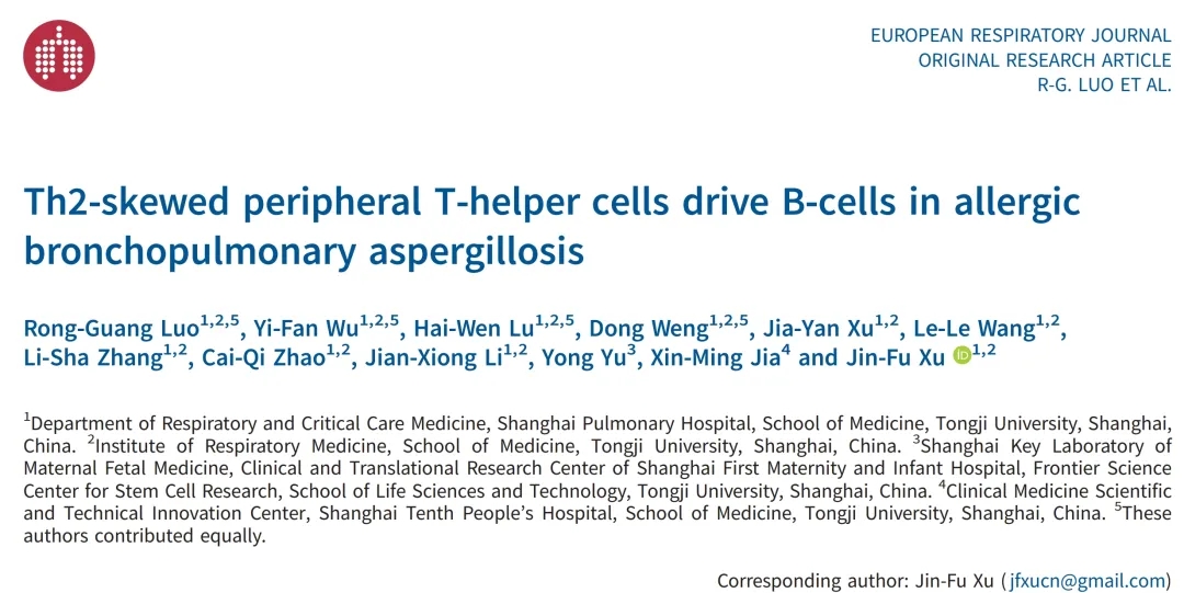 變應(yīng)性支氣管肺曲霉病(allergic bronchopulmonary aspergillosis,簡稱ABPA)常存在于支氣管哮喘及支氣管擴張癥患者中。醫(yī)學(xué)院、附屬上海市肺科醫(yī)院徐金富團隊經(jīng)對ABPA患者多年的跟蹤隨訪和探索,發(fā)現(xiàn)一群外周輔助性T細(xì)胞在ABPA的發(fā)生和加重中起關(guān)鍵作用,該群細(xì)胞可能成為ABPA未來精準(zhǔn)治療的靶點。該研究成果發(fā)表于《歐洲呼吸雜志》(European Respiratory Journal),并被同期配發(fā)述評。