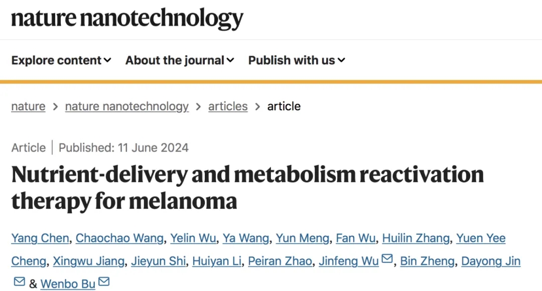 不受控的快速增殖是癌細(xì)胞區(qū)別于正常細(xì)胞的關(guān)鍵特征。生命科學(xué)與技術(shù)學(xué)院陳楊創(chuàng)新性地提出了基于營養(yǎng)素納米化技術(shù)的腫瘤代謝重激活新策略,并以黑色素瘤為例揭示通過納米營養(yǎng)素激活癌細(xì)胞被抑制的代謝通路,同樣展現(xiàn)出令人振奮的抗癌效果,有助于臨床的聯(lián)合治療,從而為腫瘤治療提供全新范式。該研究成果發(fā)表于《自然·納米技術(shù)》(Nature Nanotechnology)。