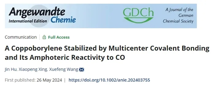 硼賓(:B–R),通常只能存在于氣相或低溫惰性基質(zhì)等極端條件下,建立在B–M共價單鍵基礎(chǔ)上的金屬化硼賓化合物被長期忽略?;瘜W(xué)科學(xué)與工程學(xué)院王雪峰和邢小鵬團隊提出金屬化硼賓概念,并利用B易于形成多中心鍵的性質(zhì),開創(chuàng)性地設(shè)計了硼賓的多中心共價鍵穩(wěn)定策略。相關(guān)成果在線發(fā)表于國際知名期刊《德國應(yīng)用化學(xué)》(Angewandte Chemie International Edition)。