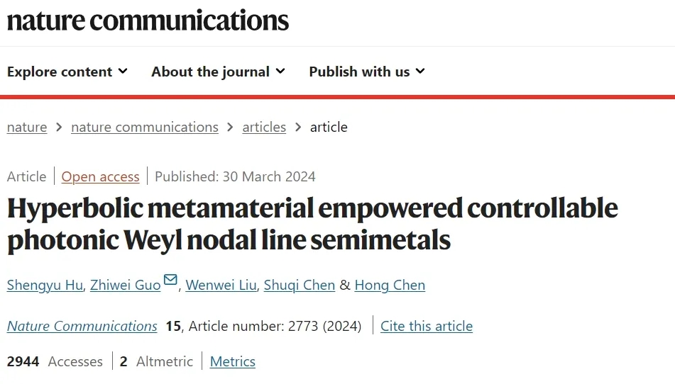 隨著拓?fù)淠軒Ю碚摰陌l(fā)展,存在帶隙的拓?fù)浣^緣體相引起了廣泛關(guān)注,推動了關(guān)于無帶隙的拓?fù)浒虢饘傧嗟男乱惠喬剿?。物理科學(xué)與工程學(xué)院陳鴻課題組提出含雙曲超構(gòu)材料的一維光子晶體可以提供一個靈活的多功能平臺以實現(xiàn)Weyl節(jié)線半金屬(WNLS)的動力學(xué)演化和拓?fù)湫哉{(diào)控。相關(guān)研究成果在線發(fā)表于《自然·通訊》(Nature Communications)。